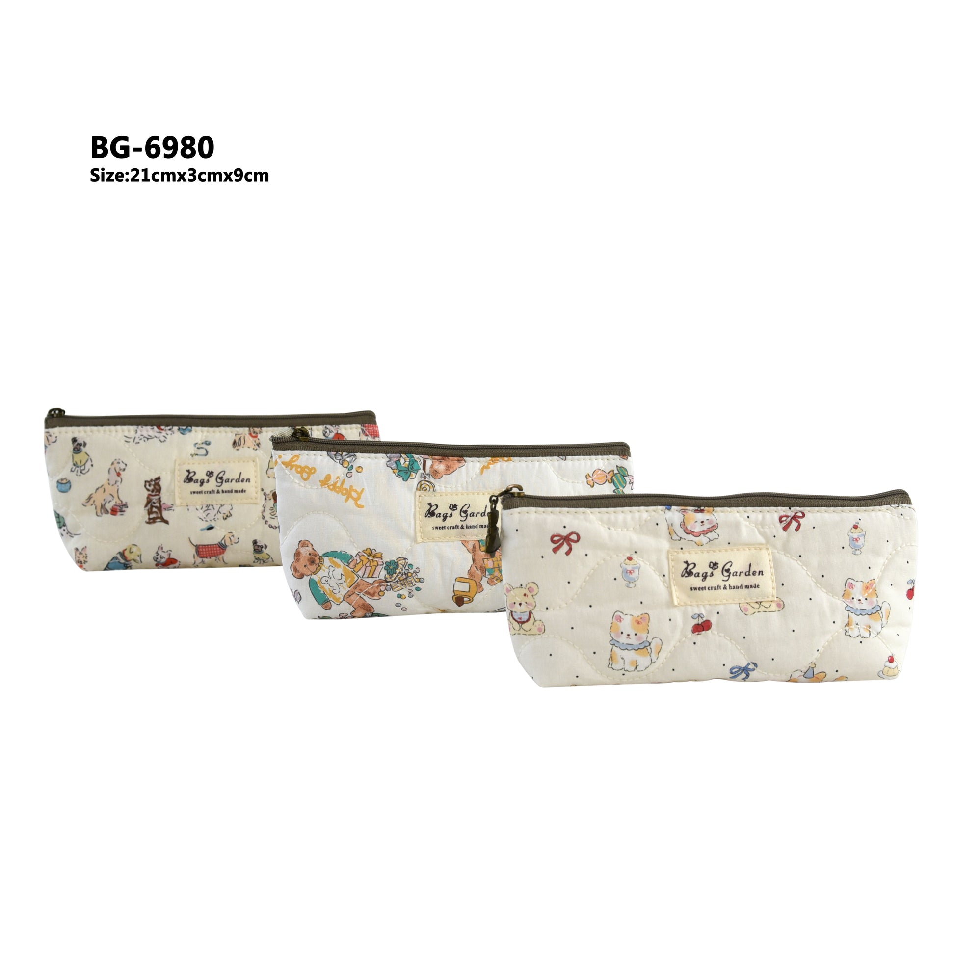 Este estuche acolchado de la colección Cartoon Friends está confeccionado en algodón suave con adorables estampados de animalitos. Su diseño ligero y práctico es ideal para llevar bolígrafos, maquillaje, cables, llaves o pequeños esenciales del día a día.