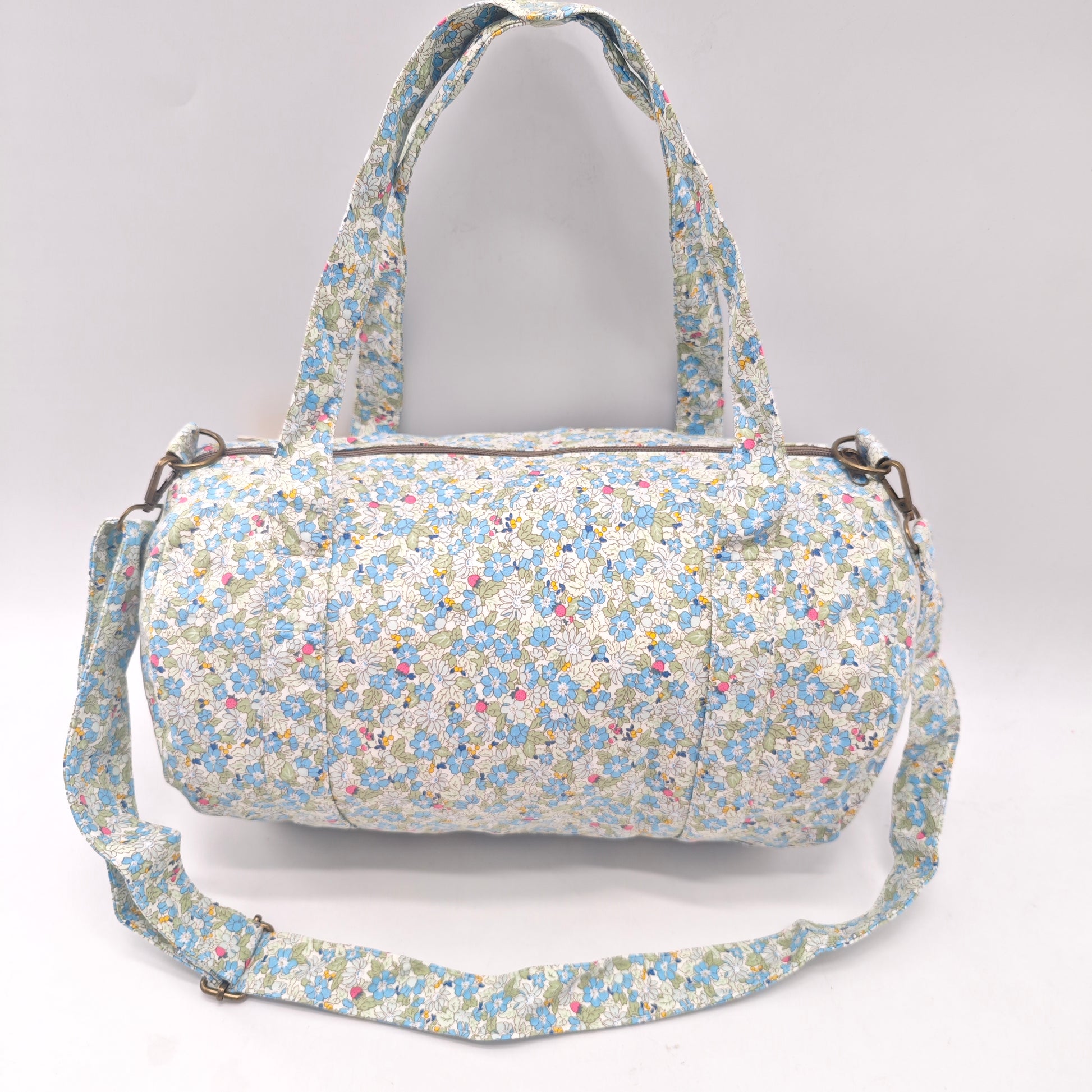 Este Bolso Barrel de Algodón Floral combina ligereza, comodidad y un diseño romántico con estampado vintage.