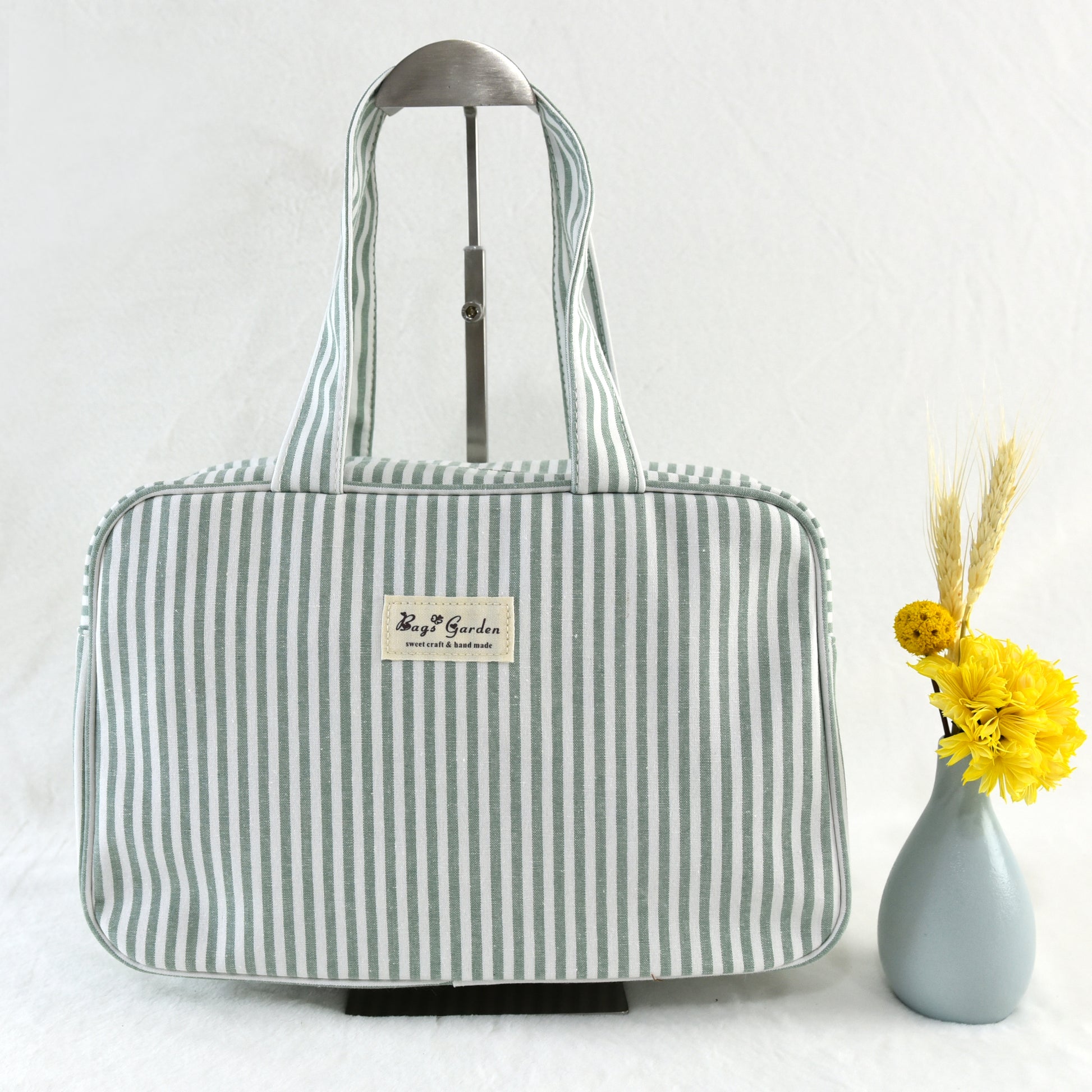 Neceser grande con diseño de rayas, confeccionado en algodón recubierto impermeable.
