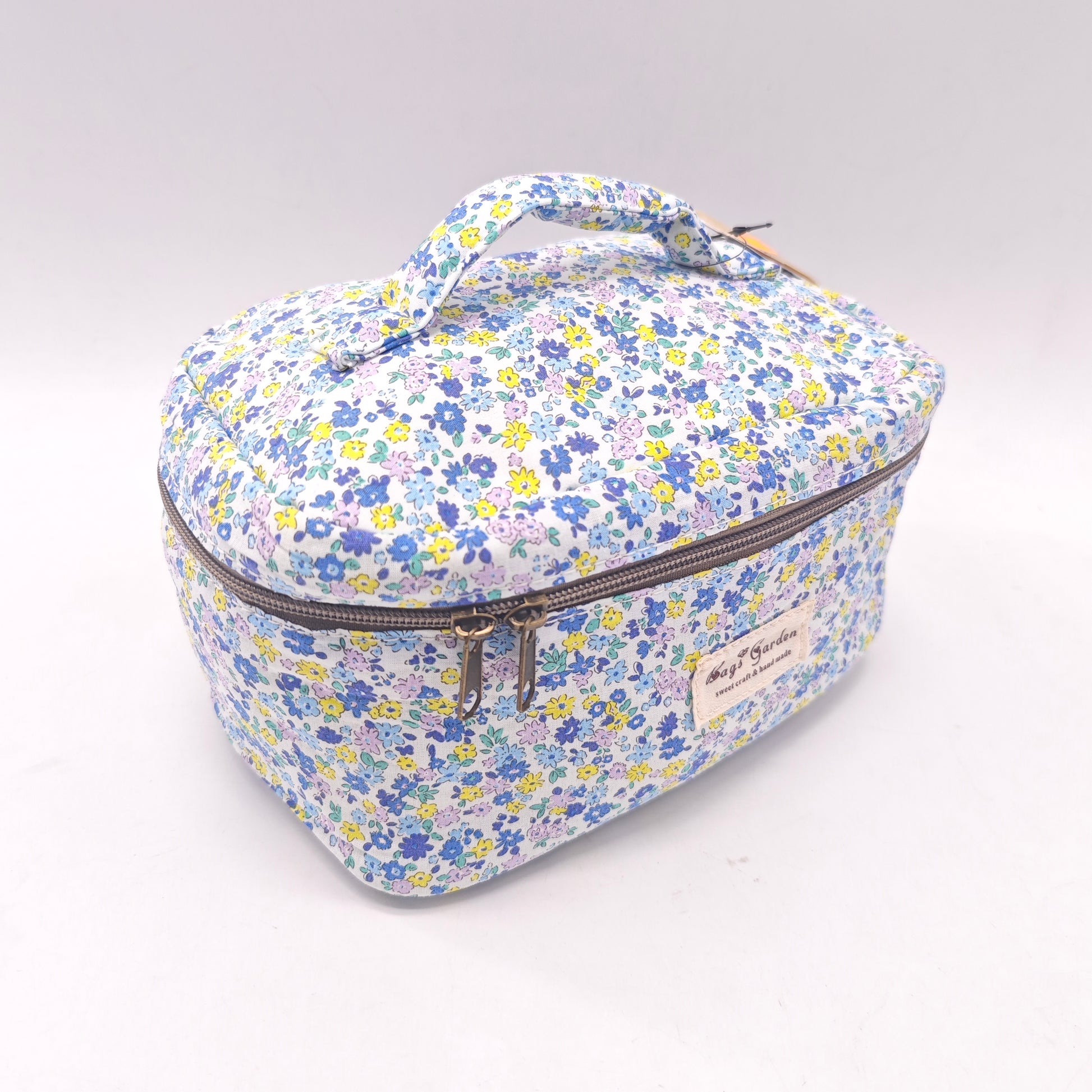 El bolso de maquillaje floral de algodón combina encanto vintage con funcionalidad moderna.