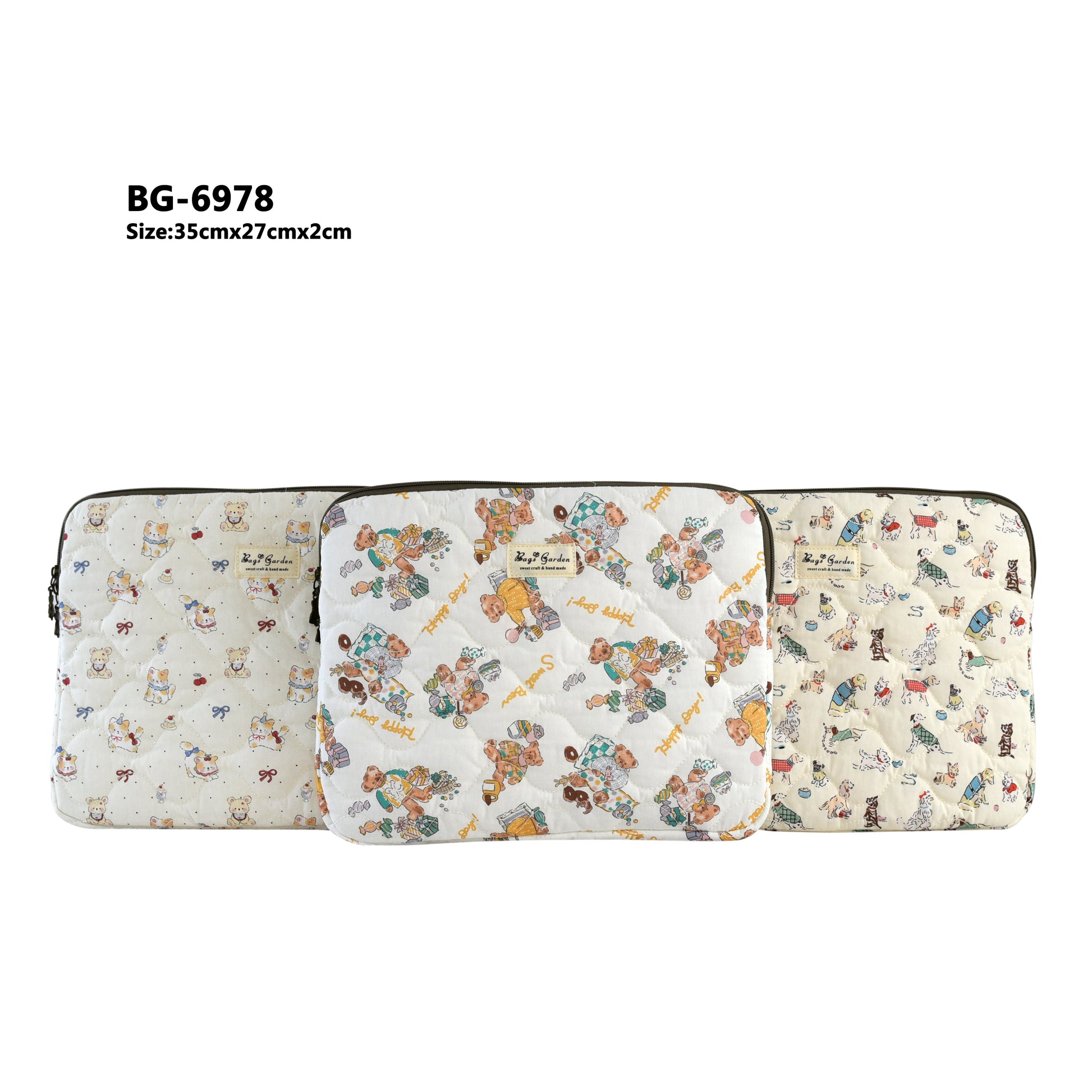 Esta funda protectora acolchada está confeccionada en algodón suave con encantadores estampados de animalitos, perfecta para proteger tu portátil o tablet con estilo.