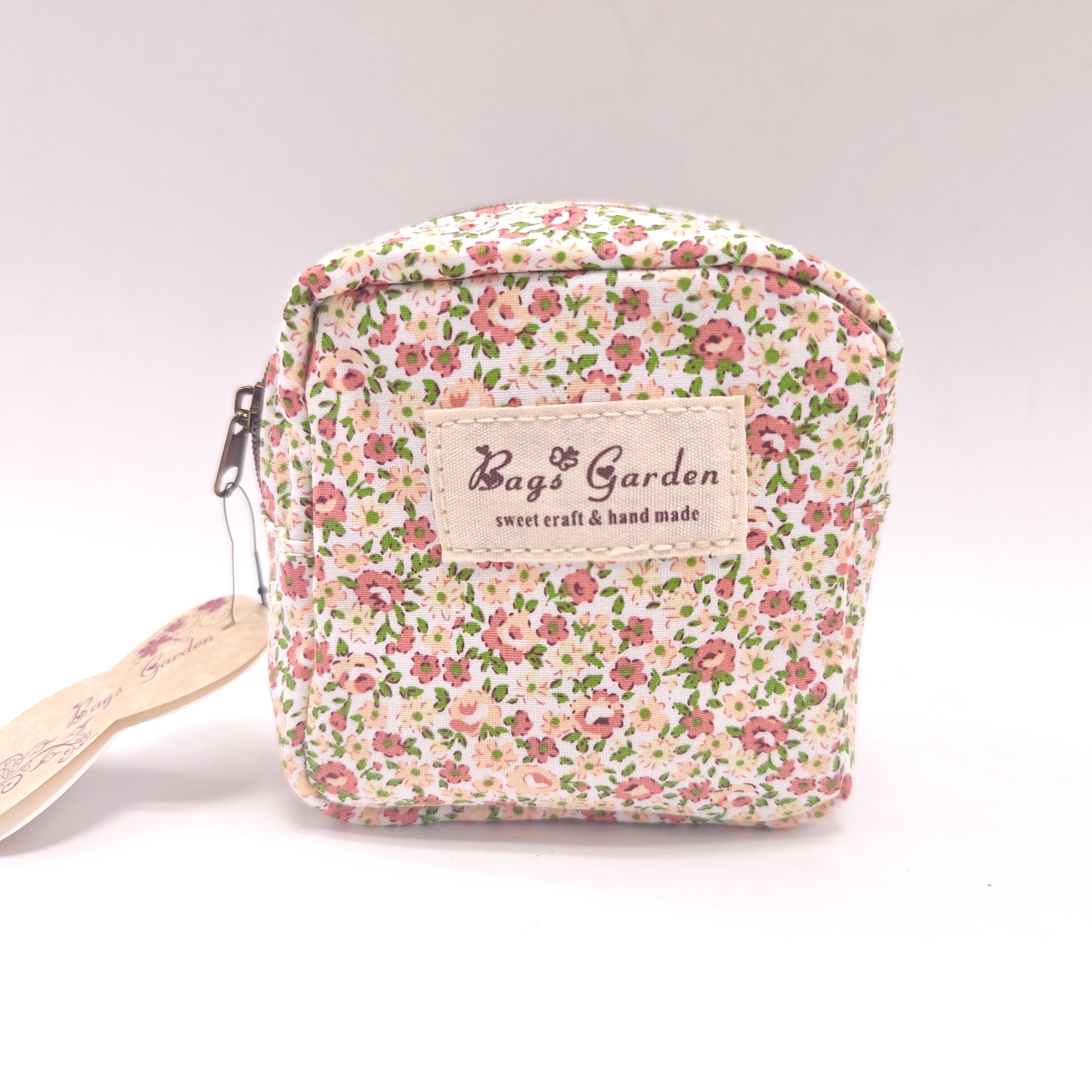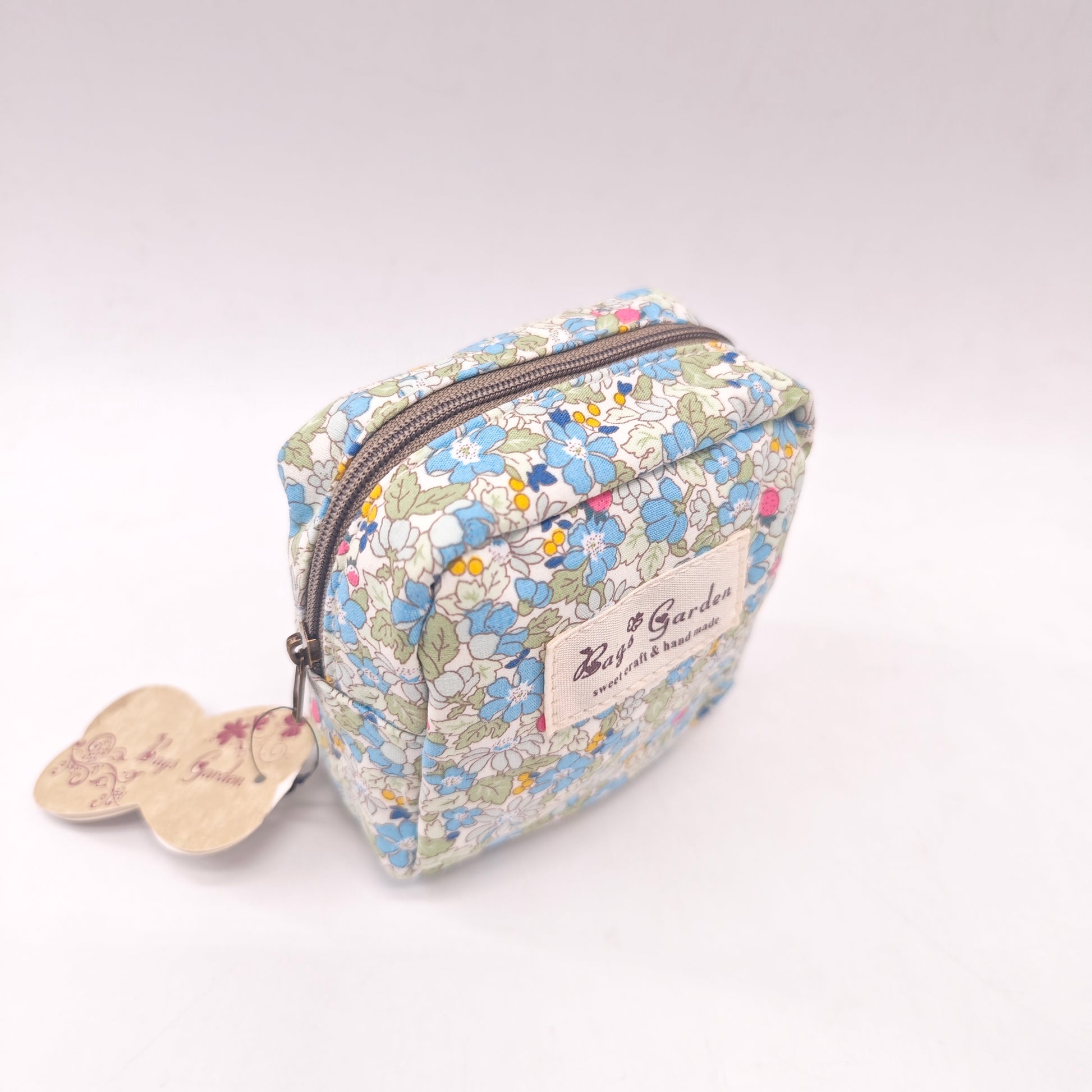 Hecho de tela de algodón suave con estampado floral vintage, es ideal para guardar monedas, llaves, tarjetas o pequeños accesorios.