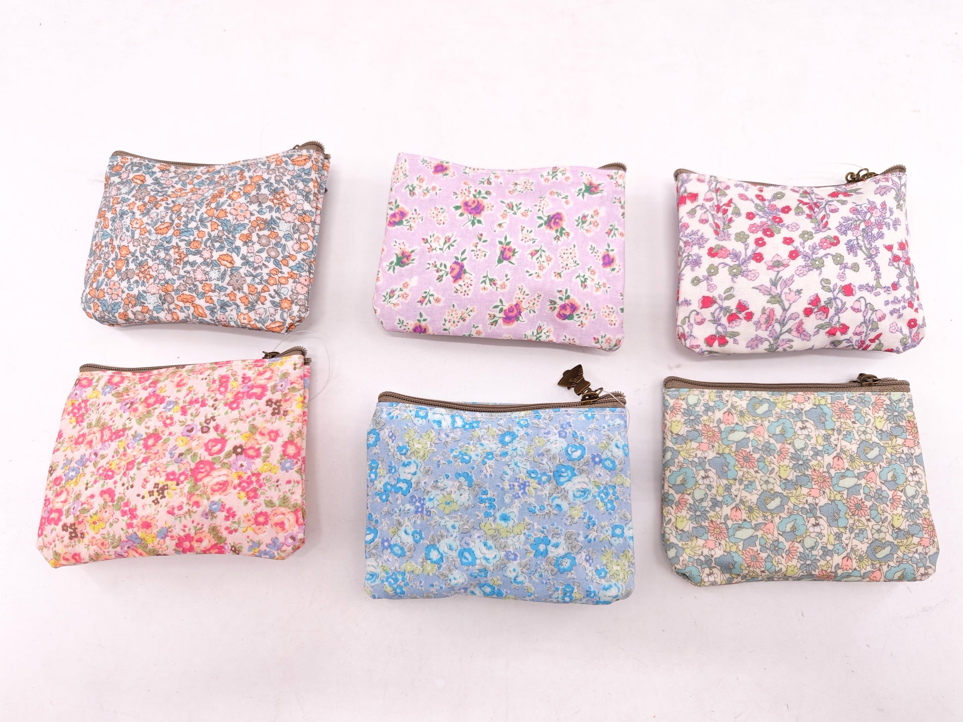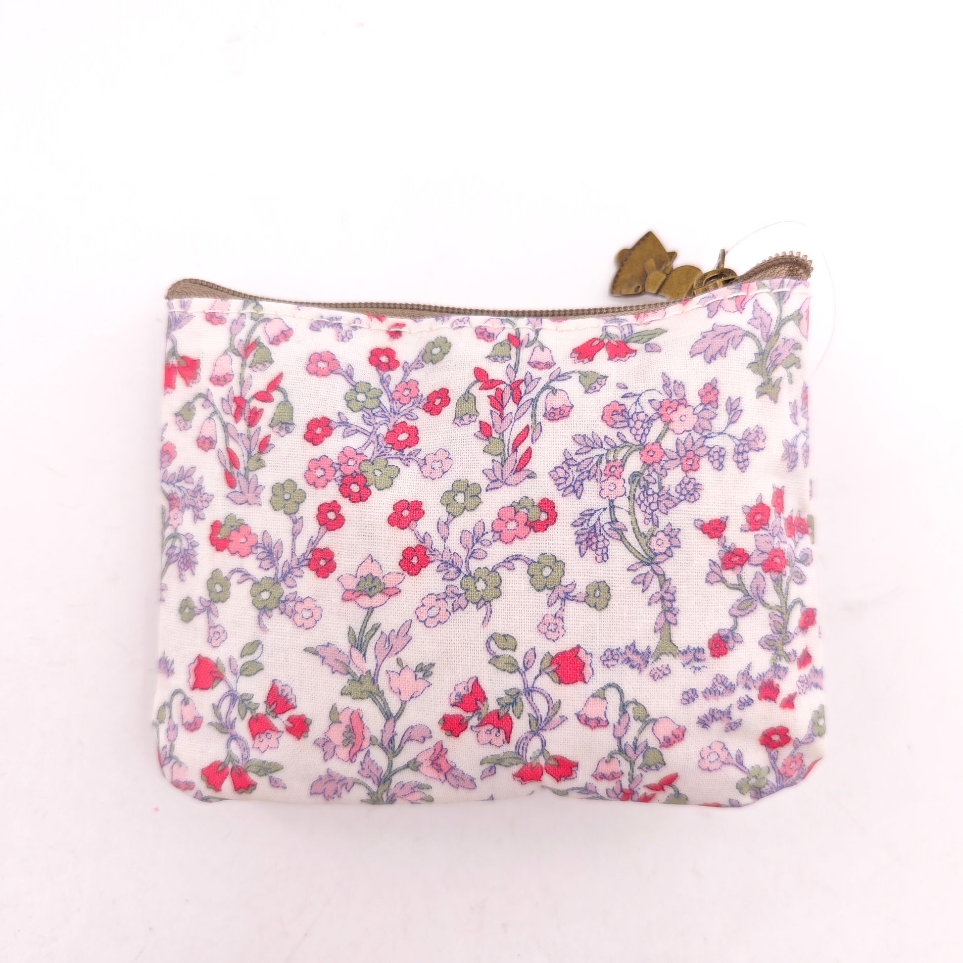 Este monedero con estampado floral cuenta con cierre de cremallera y espacio suficiente para guardar llaves, monedas, tarjetas o pequeños objetos del día a día.