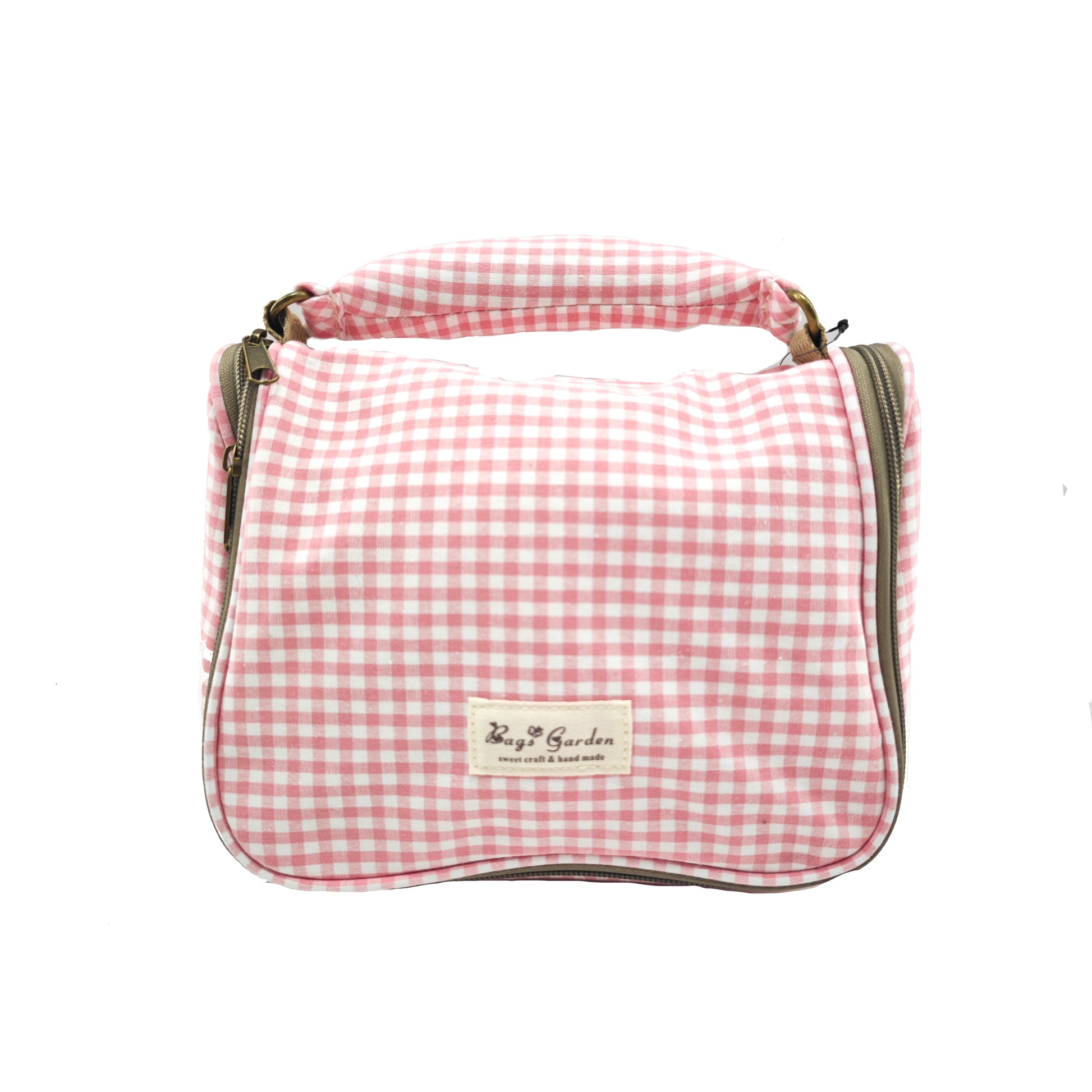 Neceser de viaje con diseño de cuadros Vichy y asa acolchada para llevar fácilmente.