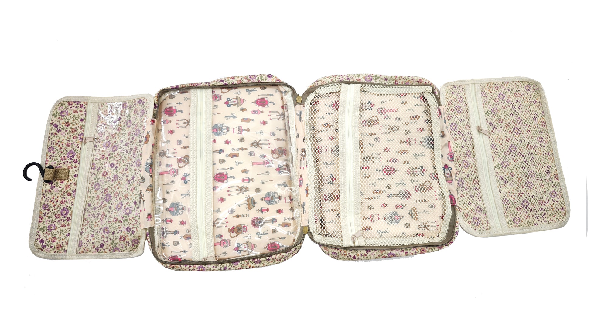 Este neceser maxi está diseñado para ofrecer orden, capacidad y comodidad en cada viaje. Confeccionado en algodón impermeable con un alegre estampado floral, es resistente, ligero y fácil de limpiar.