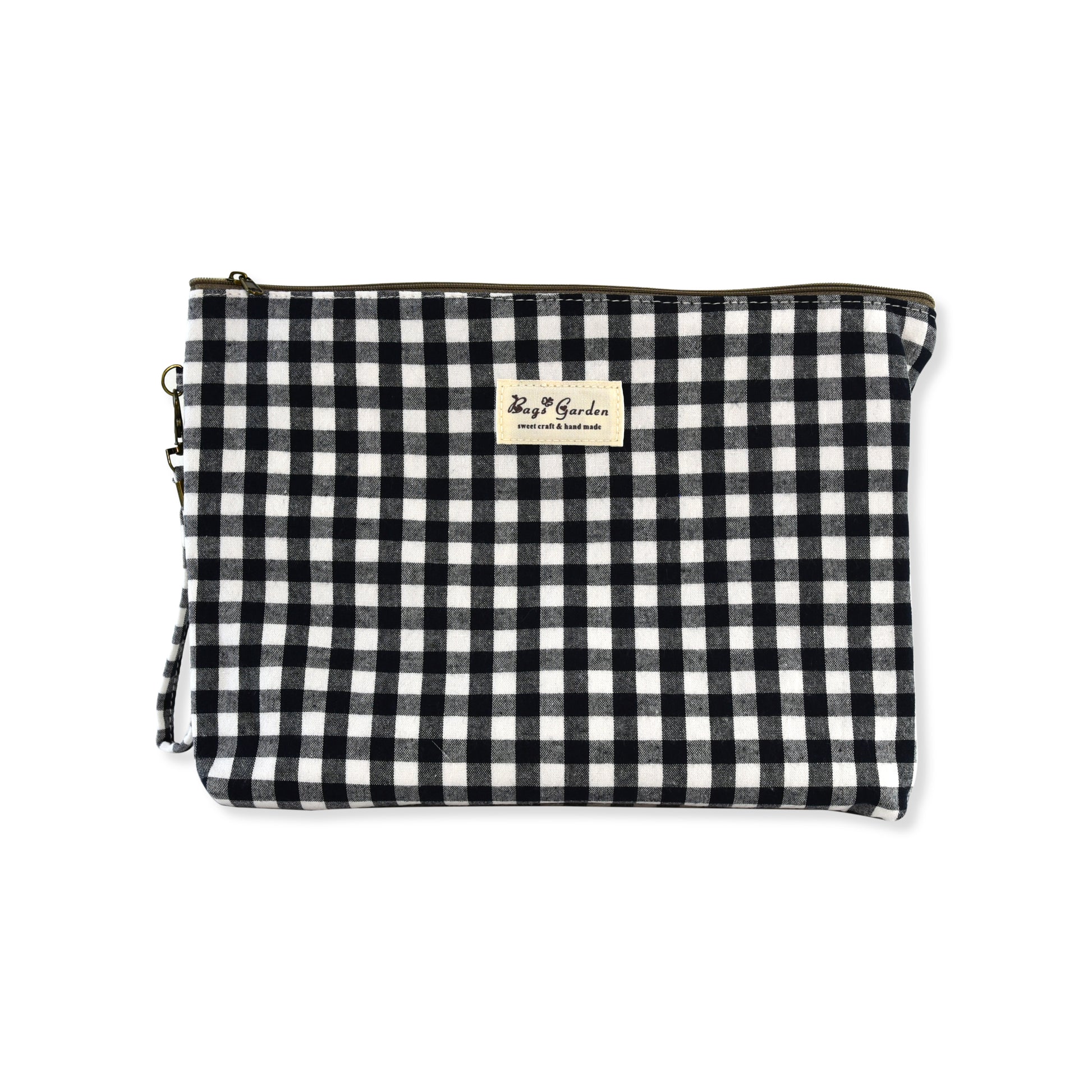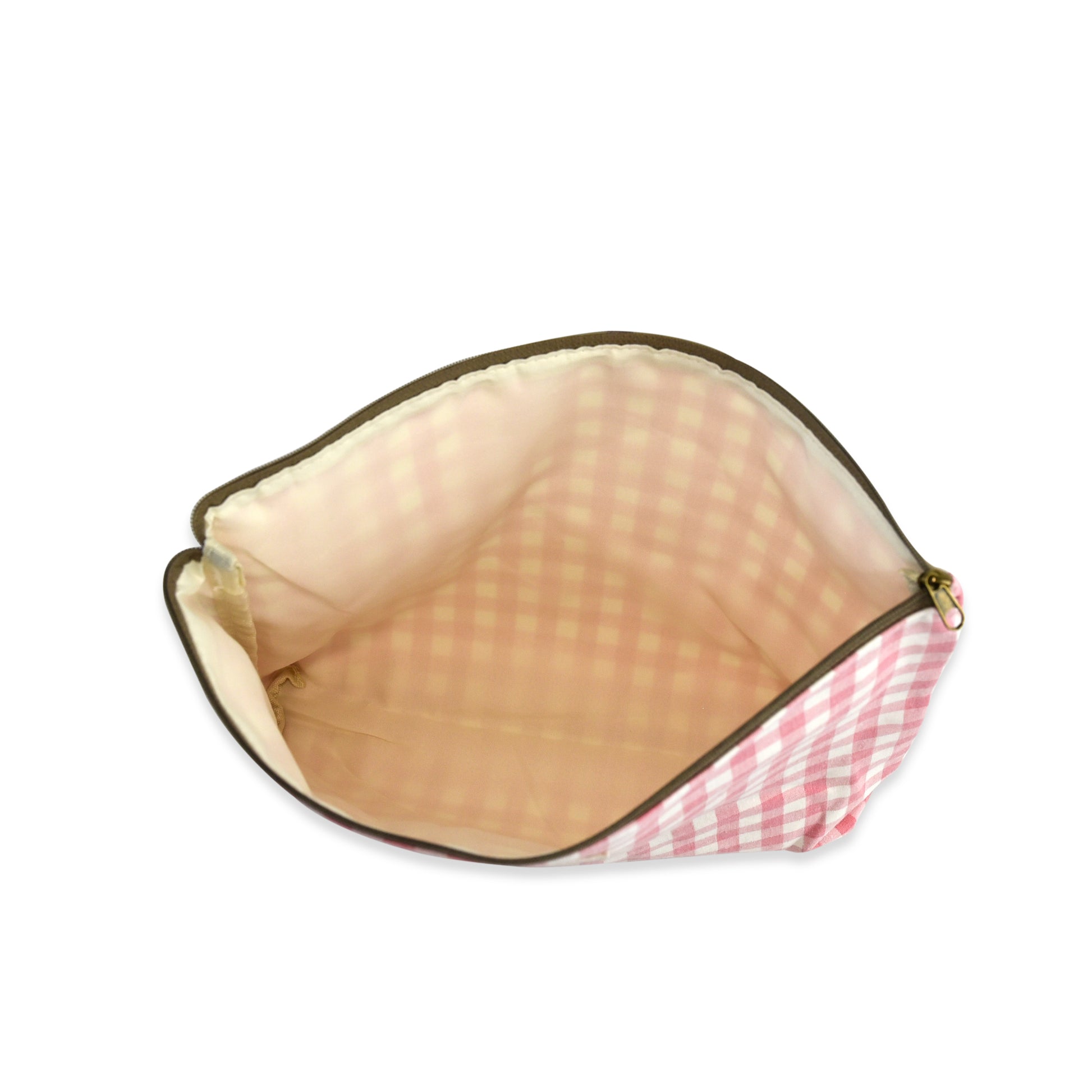 Este neceser está confeccionado en algodón con estampado vichy, un tejido suave y ligero ideal para el uso diario. Su diseño incluye cierre superior con cremallera, forro interior y un espacio amplio para organizar maquillaje, artículos personales, productos de viaje o accesorios pequeños.